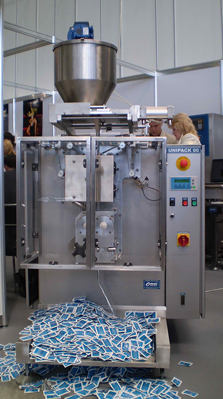 Машина предназначена для автоматического формирования пакетов с четырьмя швами, для упаковки различных видов продукции пищевой, фармацевтической, косметической, химической и др. отрасли промышленности. Унипак в симплексном исполнении имеет производительность до 30 упаковок в минуту в зависимости от типа пленки и длины пакета. Унипак в дуплексном ( двух поточном) исполнении имеет производительность до 100 упаковок в минуту в зависимости от типа пленки и длина пакета. Размеры пакета: